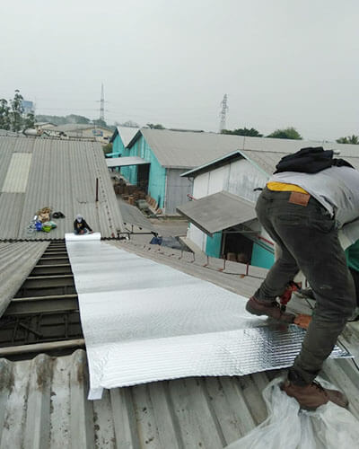 Produk PE air bubble insulasi panas atap bangunan diproses dengan mesin berteknologi canggih, fungsi insulasi 3 in 1, bisa dipasang untuk atap maupun tembok, ramah lingkungan, aman untuk kesehatan, bebas debu, non-alergi, pemasangan ringan & praktis, bubble kuat anti pecah, garansi 10thn*.